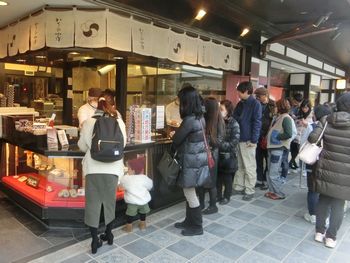 行列が出来る”梅が枝餅”の「かさの屋」![]() |