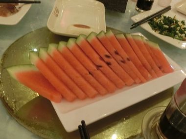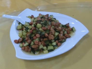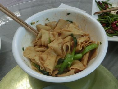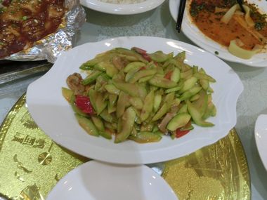 西寧の店はなかなか店で最初に熱湯の入ったボ ールで自分の食器を洗い、コップに熱湯を入れて 箸を洗うサービスがありました。 味付けも良かったし、豆腐を揚げて餡かけにした料 理は中国で初めて食べた料理で初めは何の材料を 使っているのか分からなかったのですが、食べると 美味しかったので、ツアーメンバーが聞いて、豆腐 料理だと分かって、改めて、中国料理の懐の深さを 知りました。 |