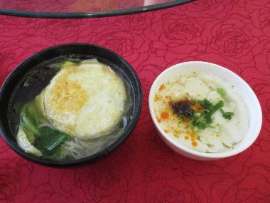 私の今朝の朝食:目玉焼き入り麺と温豆腐![]() |
