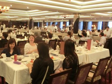 | 6月14日(木)夕食:通常はメインレストラン「ボッティチェッリ」で食べる事になっている。第1部午後5時 30分と第2部午後8時15分があり、私達は第1部の食事時間で食べた。 |