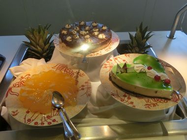 | 6月14日(木)朝食:メインレストランの「ボッティチェッリ」で”インターナショナルブレックファースト” の和食を食べたが、主食の写真を撮り忘れ、朝食ビュッフェのデザートやフルーツを撮った |