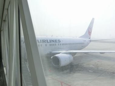 天津上空の到着:空気はモヤッている![]() |
